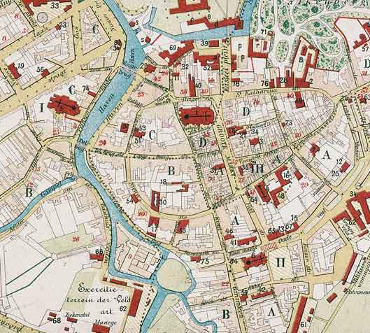 Rechtsonder de Akkerstraat waar de eerste (Johannes Petrus)Markies (winkelier/bierbrouwknecht)neerstreek te Breda in 1878, en daar woonde met zijn 10 kinderen en vrouw Johanna van Moergastel.